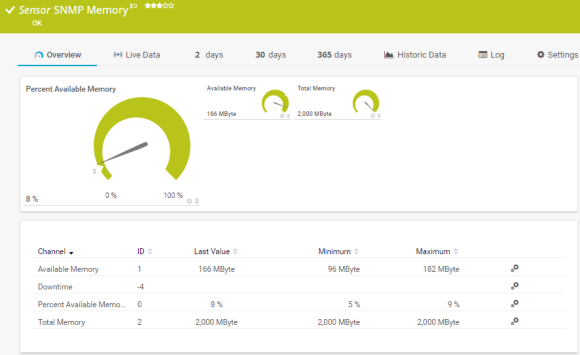 PRTG sensors use a variety of protocols to monitor your network and servers. The load generated by SNMP is quite insignificant in contrast, for example, to WMI or Windows performance counters, even for extensive monitoring with several thousand sensors. You’ll therefore rarely encounter drops in performance.